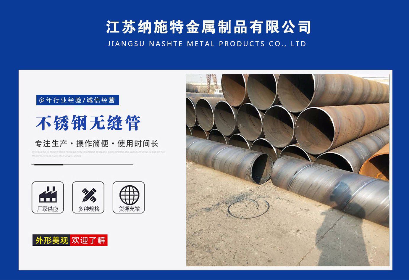 江蘇納施特金屬制品有限公司是一家集生產205不銹鋼無縫管,2507不銹鋼無縫管,316l不銹鋼焊管廠家,不銹鋼工業焊管廠家,厚壁無縫鋼管廠家等產品,公司庫存多規格齊全、質量保證。公司一貫以服務至上、質量至上、價格合理、客戶至上、讓利客戶、薄利多銷為原則,誠實守信為宗旨。 公司秉承“優質的品質和服務創造企業品牌”之宗旨,與國內外多家知名廠商建立了長期穩定的合作伙伴關系,精心匯聚各廠商的品牌產品,實現了資源互補,以適應市場的不同需求,協助廣大廠商提高自身的競爭力,是您的理想合作伙伴?! 」鞠聦伲簶I務部、財務部、快運部、運輸部、倉儲部、加工部、(自備貨車、吊車、行車、自動切割、半成品)免費為用戶提供裝卸等一條龍服務。保證用戶利益、互惠互利做生意、誠心誠意交朋友?! 》粘兄Z:提供優質的不銹鋼及有關產品,遵守道德標準,努力提供獨特的產品和高水平服務?! ≠|量承諾:隨時為客戶提供產品和服務,充分領會客戶要求,盡職盡責,永無例外,竭盡全力,持續發展。 公司秉承:“顧客至上,銳意進取”的經營理念,堅持“客戶至上”的原則為廣大客戶提供優質的服務。 愿我們公司和社會各界同仁、諸位朋友、尊貴的各位客戶攜手并進,共同發展,同繪新世紀的宏偉藍圖! 公司宗旨:優質的品質和服務創造企業品牌?! 〗洜I理念:以...